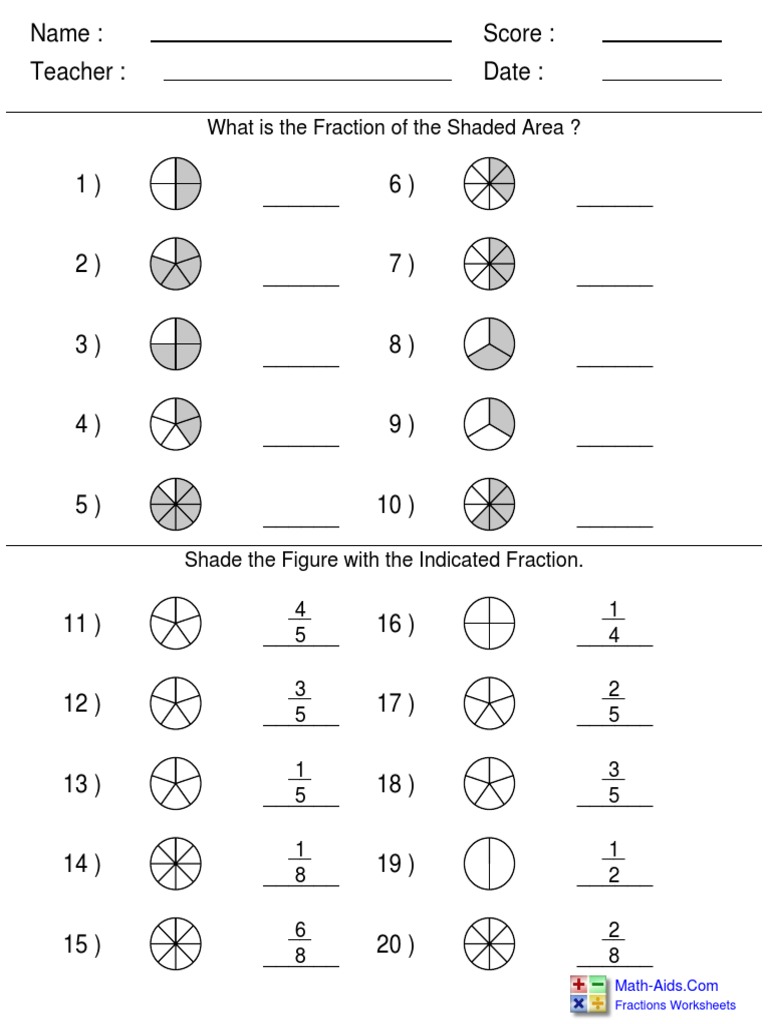 Math explained in easy language, plus puzzles, games, quizzes, videos and worksheets. Use this fractions worksheet to produce rectangular fractions bars and pie wedge fractions to be used as visuals in your teaching lesson plans. Fractions worksheets backed by cool lessons this site is all about the fractions. These grade 1 worksheets introduce students to fractions. Home » system worksheet » math aids com fractions worksheets.